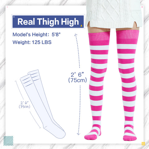 Kayhoma thigh high socks are 28" to 30" in length. It was even able to meet girls who are 6 feet tall. The great elasticity and super soft fabric make it very adaptable. So please visit Kayhoma first if you plan to buy a pair of thigh high socks.