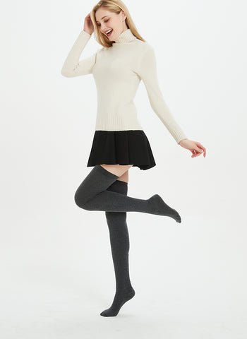 Kayhoma Thigh Thigh Socks No garter belts, as these socks won't slip at all. There are 3" wide bands at the top of each pair of Kayhoma thigh high socks, these wide bands have great adhesion and they help these socks stay on the thigh all the time. They have excellent elasticity, the rebound is very gentle and restrained, and the socks just stay comfortably on the thigh. That's why everyone is so impressed with Kayhoma thigh high socks.