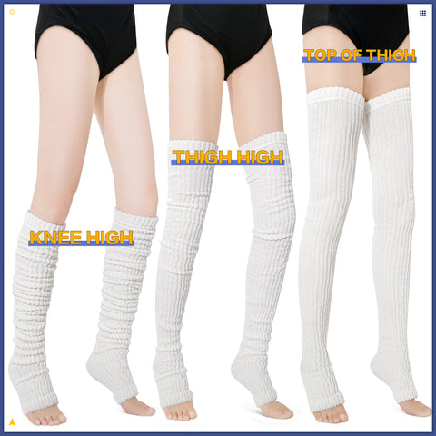 So for really high quality leg warmers, the optimal length is from ankle to knee high, not just calf high.