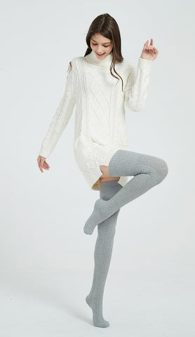 These thigh high socks are thick but not particularly thick. They are somewhere between a T-shirt and a thin sweater. So these socks can replace leggings and are also warm in fall or winter, but they are much more free than leggings. They can even transform into leg warmers, which can be paired with boots, or fill in the gaps between boots and thighs to keep legs warm.